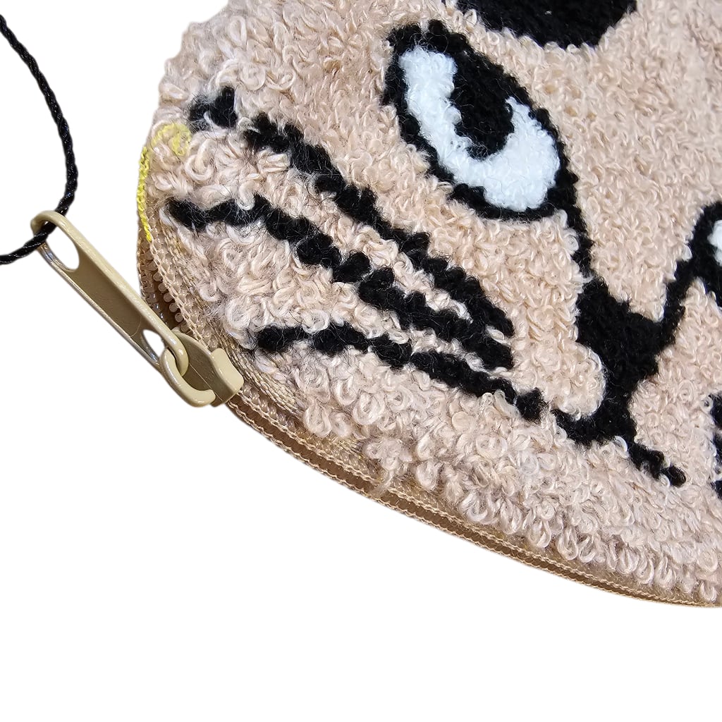 松尾ミユキさんが描いた愛らしいネコのイラストを、ふわふわとしたサガラ刺繍で表現したポーチです。