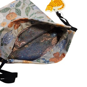 松尾ミユキさんの描く繊細なタッチの草花や動物たちを、ゴブラン織りの巾着に落とし込みました。