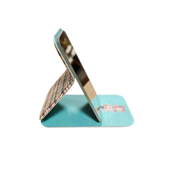 3段階に角度を調整できる折りたたみミラーに、ナタリー・レテさんの楽しいイラストたちをデザインしました。